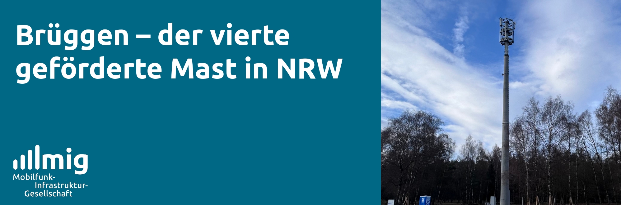 Nach Möhnesee (Landkreis Soest), Kierspe und Plettenberg (beide im Landkreis Märkischer Kreis) steht nun auch der Mast in Brüggen im Landkreis Viersen in Nordrhein-Westfalen. Es ist der vierte von der MIG geförderte Mobilfunkstandort in Nordrhein-Westfalen.